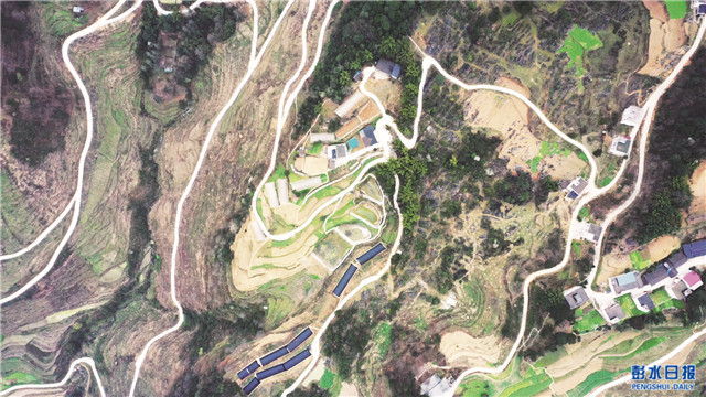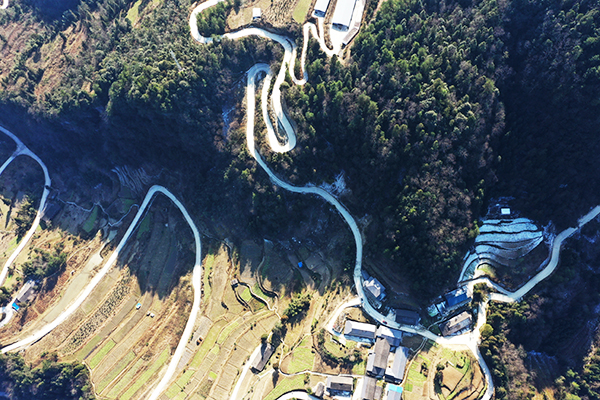 2月23日,無(wú)人機(jī)航拍的大埡鄉(xiāng)鄉(xiāng)村公路,猶如一條條玉帶蜿蜒山間。