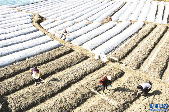 1月13日,在走馬鄉樓房村,村民正在忙著育天門冬苗。