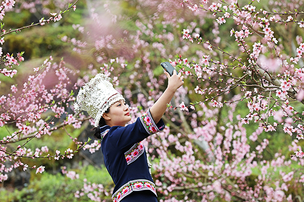 桃花李花競相綻放春意濃