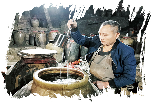 今年45歲的何東歐是梅子埡鎮蓋坪村4組村民,是彭水苗家天鍋釀酒技藝市級非遺傳承人。