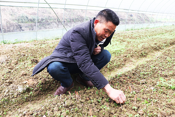 大壩村村民委副主任曾洪奎則忙著查看羊肚菌的長勢,看著不少羊肚菌已經(jīng)破土而出,曾洪奎欣喜之情溢于言表。