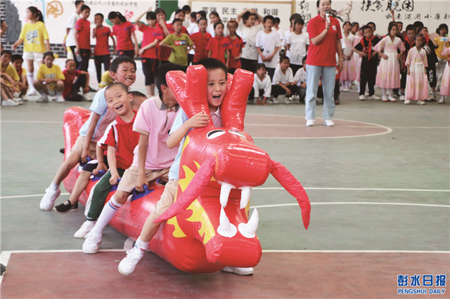 此外,“球球大作戰”、“打地鼠”和“賽龍舟”等趣味游戲,讓孩子們樂在其中、玩在其中,讓濃濃的節日氣息深深的烙在孩子心中。“我國地大物博、歷史悠久、文化厚重,我們有責任去傳承去弘揚,讓我們從孩子抓起,從娃娃抓起,共同當好傳統文化的傳承者。”縣青少年活動中心工作人員劉莉說。