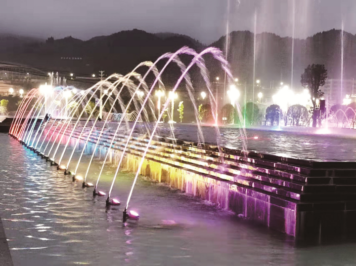 重慶彭水網(wǎng)(融媒體記者 趙勇)近日,彭水新城市民廣場修建的3個鏡面音樂噴泉建成投用,每周星期五、星期六、星期日晚上6:30到8:30開放,成為市民打卡游玩的好去處。據(jù)了解,新城市民廣場一期的占地面積為49000㎡,其中硬質鋪裝面積為35000㎡。廣場中間建有3個長47米,寬28米的鏡面音樂噴泉水池,最高噴射水位達到30米,3個噴泉水池組成了廣場上的中軸線。噴泉水池旁邊地磚采用透水磚,能夠達到很好的滲水效果,確保地面不濕滑,不影響行人安全。