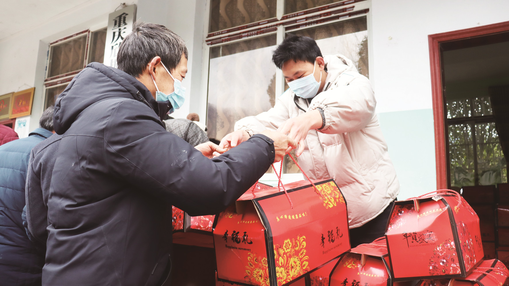 村民領取禮品。