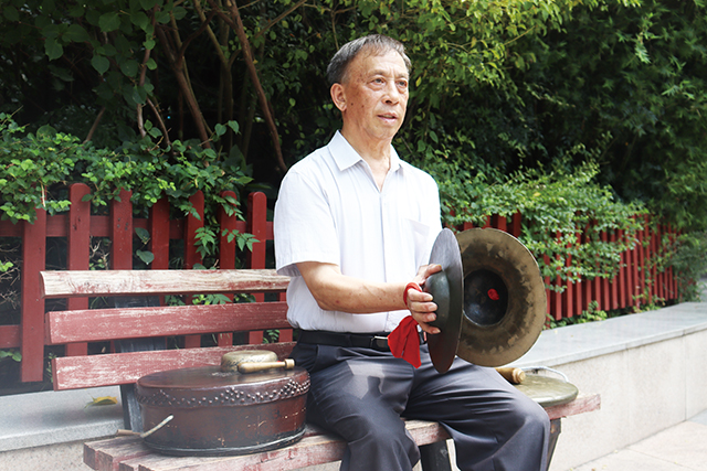 8月25日,記者見到彭水耍鑼鼓非遺傳承人任漢平時,他正手拿鼓槌敲擊著小鼓,過了一會,他又將鼓換成了鈸,練習了一遍自創曲牌《高山流水》。