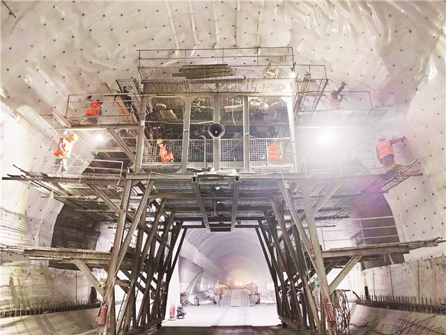 為打造高品質(zhì)工程,施工中,針對(duì)標(biāo)段內(nèi)隧道占比高,也是施工質(zhì)量易發(fā)高發(fā)點(diǎn)的特點(diǎn),項(xiàng)目聚焦《平緩傾層頁(yè)巖隧道施工技術(shù)研究》《低瓦斯隧道施工技術(shù)研究》《橋隧連接段橋臺(tái)進(jìn)洞施工技術(shù)研究》等多項(xiàng)攻關(guān)課題,成立QC質(zhì)量攻關(guān)小組,展開專項(xiàng)課題攻關(guān)。項(xiàng)目部還依托“職工創(chuàng)新工作室”,大力推廣新技術(shù)、新工藝在工程建設(shè)中的應(yīng)用,以科技創(chuàng)新保障工程質(zhì)量創(chuàng)優(yōu),創(chuàng)新研發(fā)了二襯鋼筋定位卡具、接觸網(wǎng)槽道定位平臺(tái)、拱頂防脫空預(yù)警、仰拱全幅模板分層澆筑、二襯滑槽逐窗入模、拱頂帶模注漿、噴淋養(yǎng)護(hù)小車和水溝電纜槽快速施工等多項(xiàng)隧道襯砌成套施工技術(shù),確保隧道二襯光潔平整無色差、仰拱干凈平整。