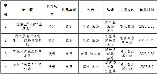 彭水苗族土家族自治縣新聞工作者協會關于擬參加第26屆重慶新聞獎(2024年度)新聞攝影作品初評的公示