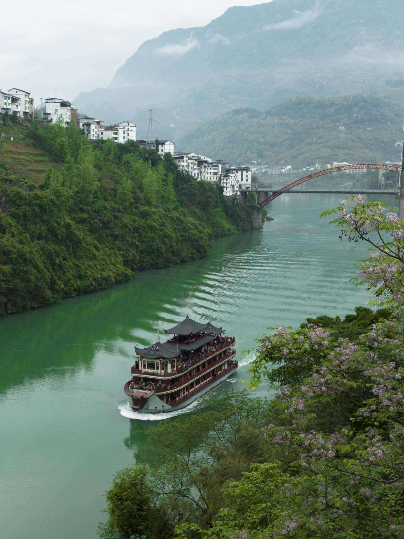 游船航行在烏江上,與青山、碧水、橋梁、建筑等共同構成一幅幅美麗的鄉村畫卷。