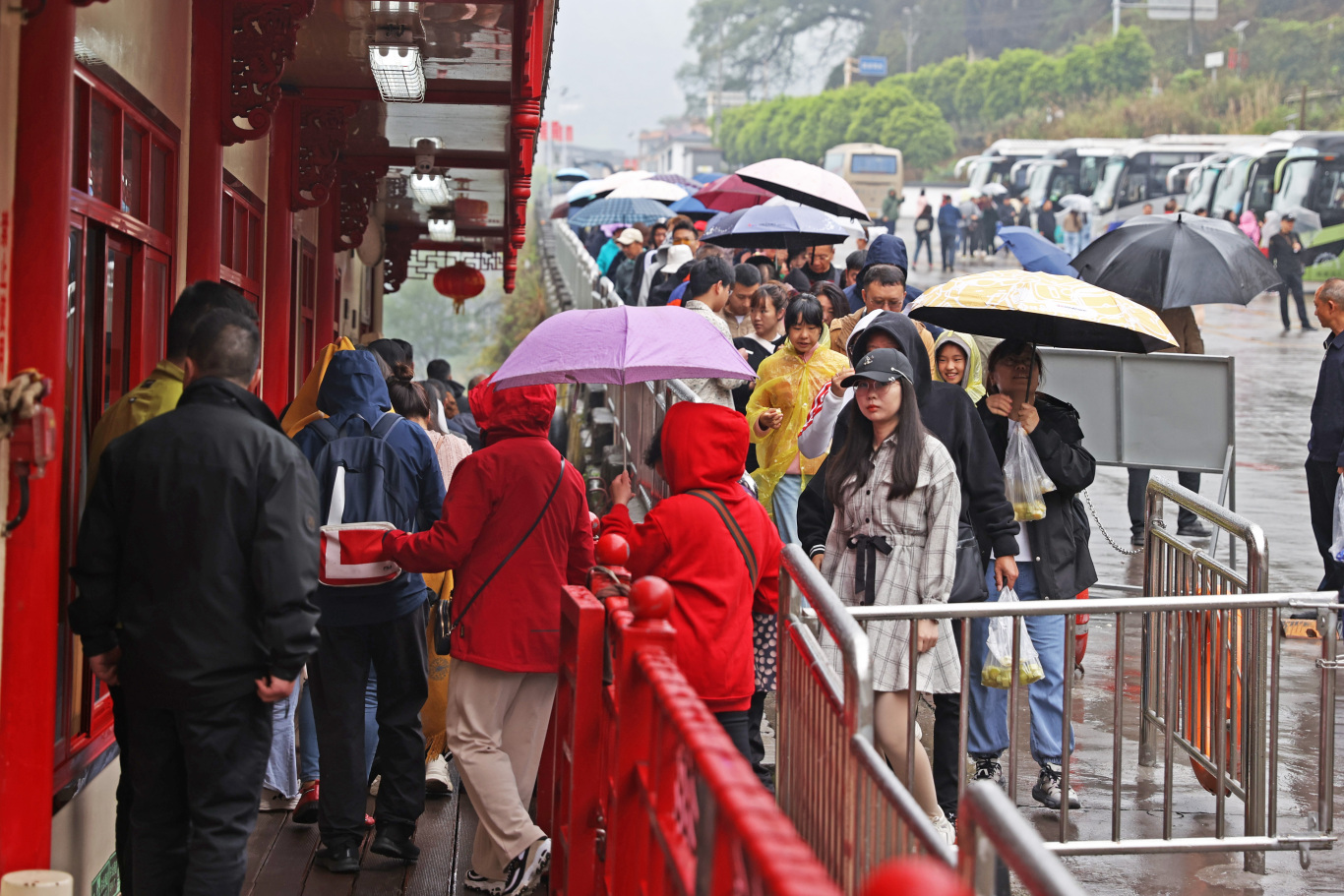 在高谷鎮水域,游客們登上游船,暢游烏江畫廊。