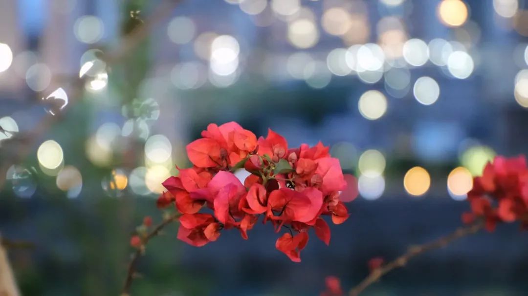 夜幕降臨,城市的喧囂漸漸退去,三角梅在黑暗中綻放出獨(dú)特的美麗。