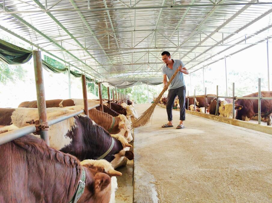 養殖肉牛以來,王兵每天親自喂養,并仔細查看牛的長勢、健康及防疫情況。為防止牛生病,平時牛棚一個月消毒一次,每頓飼料喂完都清掃牛棚,讓牛舍保持干凈整潔,防止細菌滋生。