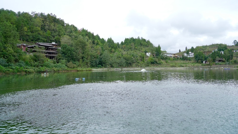 廟池村龍橋灣魚塘,水面面積近15畝,養殖著裸鯉、草魚、花鰱等經濟魚類。類似的魚塘,廟池村還有多處,總面積超過80畝,養殖著200余萬尾、20余萬斤生態魚。