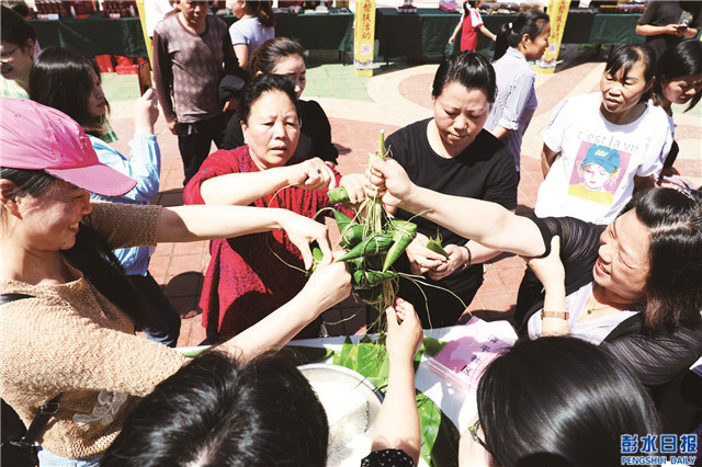 6月8日,端午節來臨之際,由中國社會福利基金會、騰訊公益慈善基金會支持建設的新田鎮馬峰社區“為村暖心服務站”與重慶三峽銀行彭水支行組織當地社區居民開展包粽子比賽,豐富社區居民生活,慶祝端午佳節。